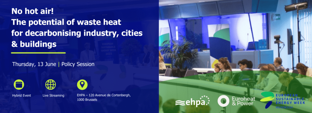 Join the European Heat Pump Association (EHPA) and Euroheat & Power (EHP) during the European Sustainable Energy Week 2024 for a thrilling debate titled No hot air! The potential of waste heat for decarbonising industry, cities and buildings.